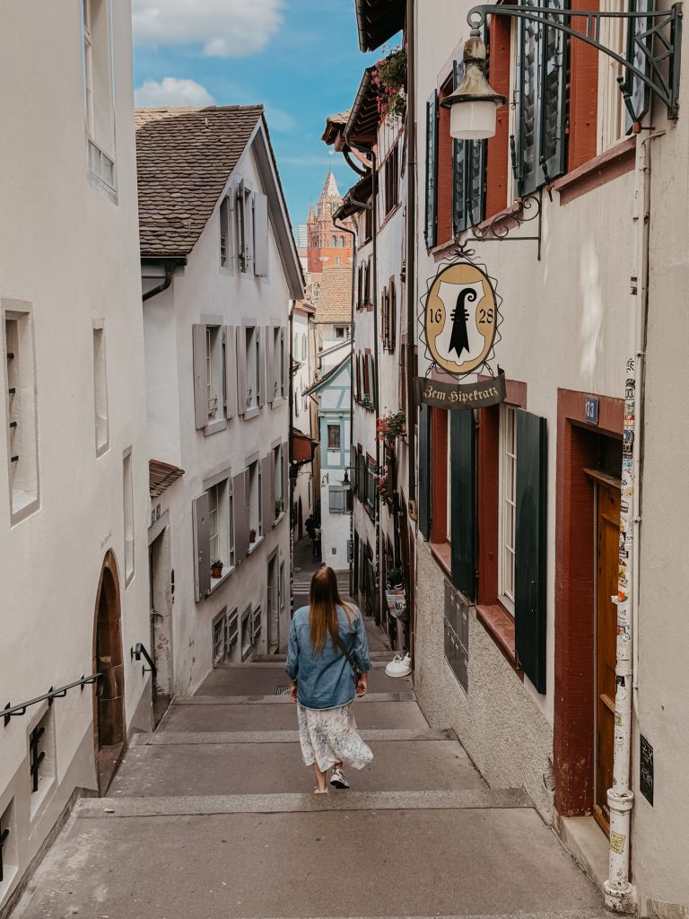 Das Pfeffergässlein ist eine der kleinsten und charmantesten Gassen der Altstadt. Schon wenn du hindurchgehst, spürst du die ruhige, fast intime Atmosphäre zwischen den alten Häusern. Wenn du genau hinschaust, fallen dir kleine Details an den Fassaden auf, die sonst leicht übersehen werden – alte Türen, steinerne Fensterbänke oder kunstvolle Hausnummern. Das Pfeffergässlein ist perfekt, um einen ruhigen Moment abseits der belebten Straßen zu genießen oder ein paar Fotos mit historischem Flair zu machen. Hier erlebst du die Altstadt wirklich auf Augenhöhe und entdeckst ein Stück verborgenes Basel.