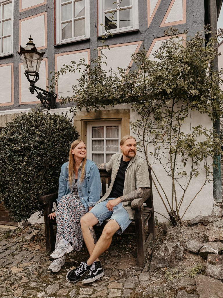 Der kleine Fachwerkort hat uns sofort in seinen Bann gezogen: enge Kopfsteinpflastergassen, liebevoll restaurierte Häuser mit bunten Fassaden und charmante Plätze, die zum Verweilen einladen. Beim Spaziergang durch den historischen Ortskern entdeckst du den Turm der alten Stadtmauer und viele liebevolle Details, die von der langen Geschichte des Ortes erzählen. Immer wieder laden gemütliche Cafés und urige Läden zu einer kurzen Pause ein – perfekt, um den Moment zu genießen und die besondere Atmosphäre aufzusaugen.