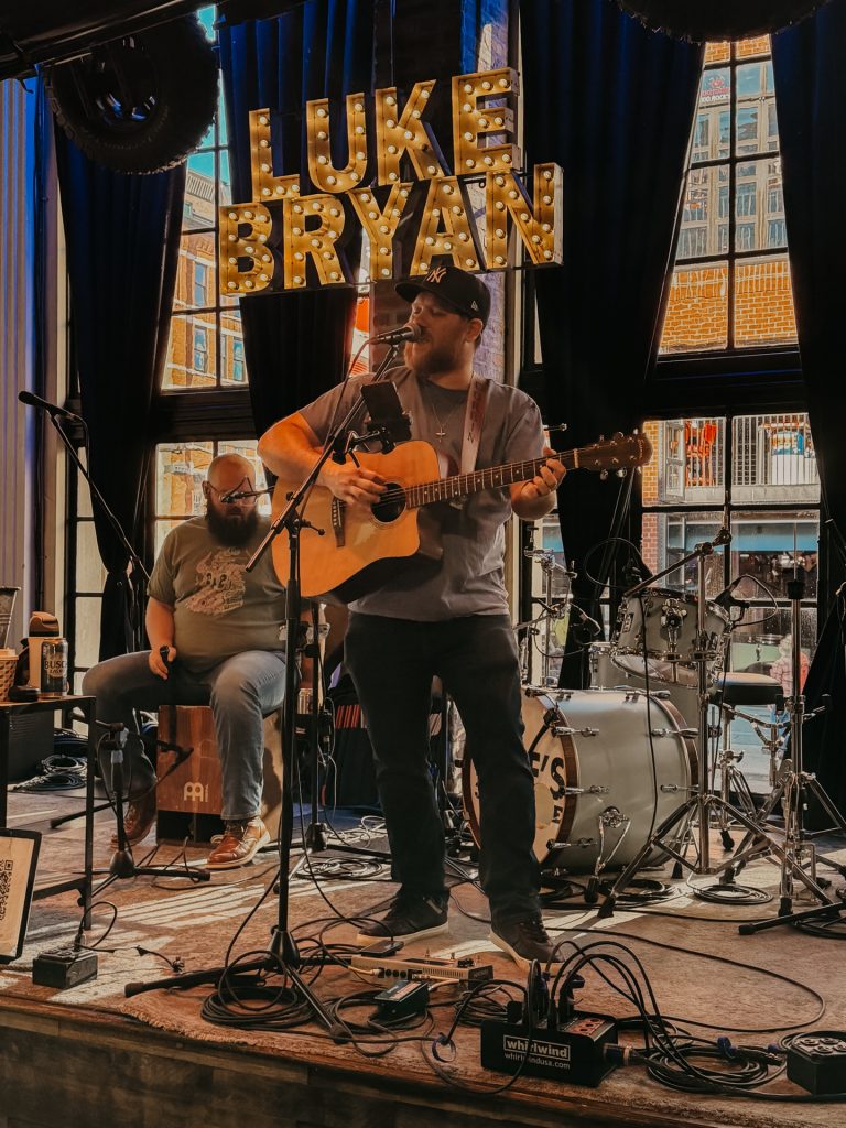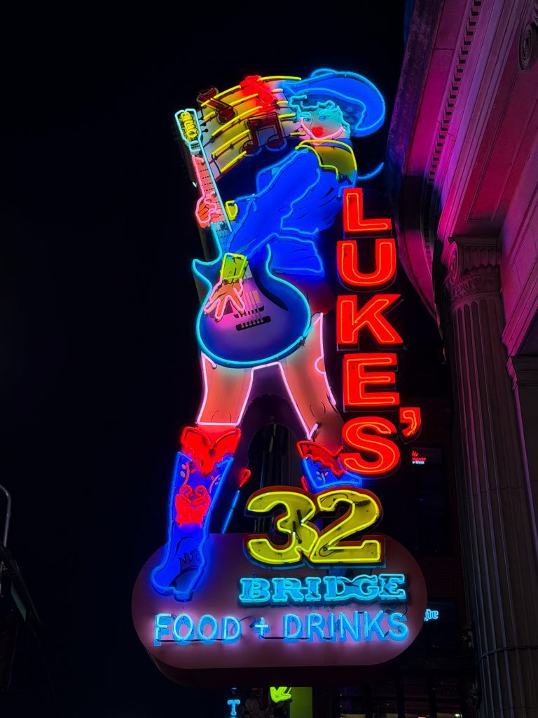 Als wir dann das erste Mal durch die Straßen gelaufen sind und aus jeder Bar Live-Musik zu hören war, war sofort dieses besondere Gefühl da. Überall standen Türen offen, Gitarrenklänge lagen in der Luft und die leuchtenden Neonschilder haben die Straßen in dieses typische Nashville-Licht getaucht. An jeder Ecke spielte jemand einen neuen Song. Genau so hatten wir uns Nashville vorgestellt, vielleicht sogar noch ein bisschen besser.