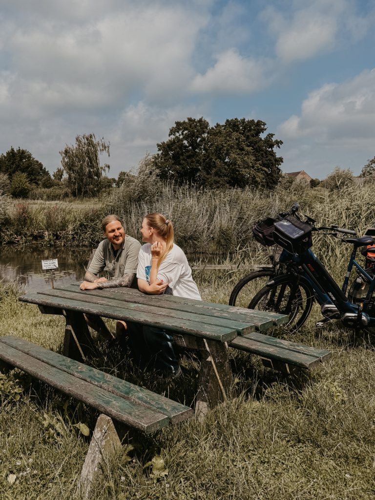 Mit dem Rad lässt sich die Gegend wunderbar erkunden. Die Strecke ist einfach zu fahren und bietet immer wieder kleine Überraschungen. Unterwegs kannst du Eisvögel, Reiher oder eine grasende Schafherde entdecken.