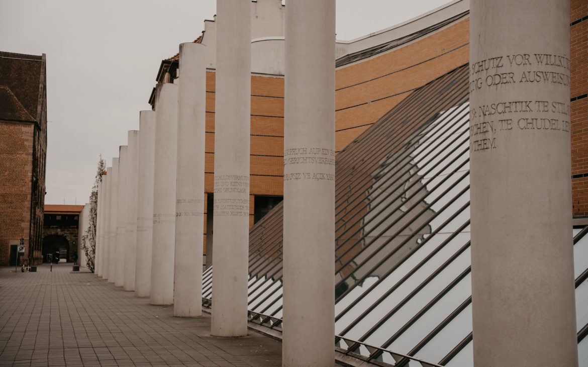 Die Straße der Menschenrechte ist ein Ort, der sofort ins Auge fällt und gleichzeitig zum Nachdenken anregt. Du gehst zwischen hohen, klaren Betonstelen hindurch, die wie stille Zeugen entlang der Straße stehen. Auf jeder Stele ist ein Menschenrecht in verschiedenen Sprachen eingraviert. Beeindruckend ist, wie viele Kulturen und Sprachen hier zusammenkommen. Gleich gegenüber befindet sich das Germanische Nationalmuseum Nürnberg, das größte kulturhistorische Museum des Landes. Hier kannst du die Geschichte und Kunst des deutschen Sprachraums vom Mittelalter bis in die Gegenwart entdecken, von Gemälden und Skulpturen bis zu Alltagsgegenständen und historischen Dokumenten.
