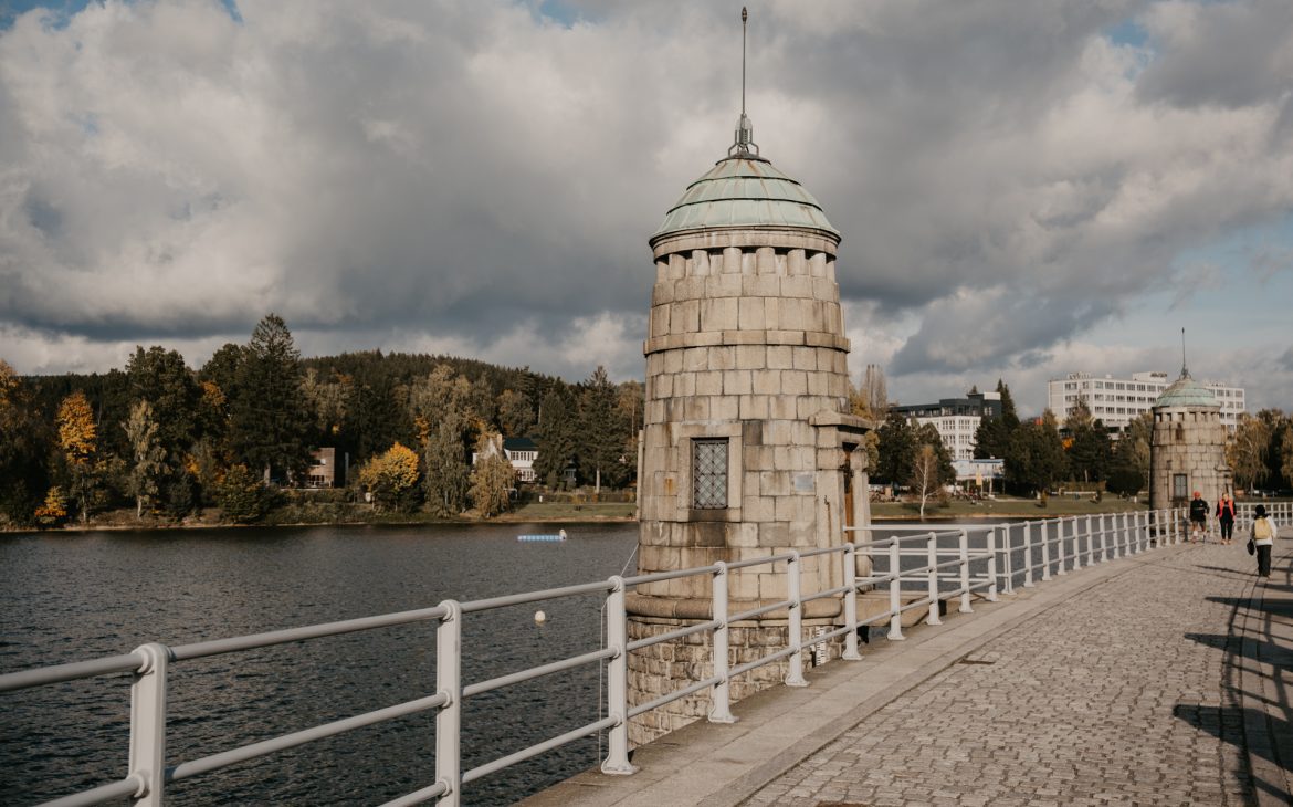 Direkt am Stadtrand von Jablonec nad Nisou liegt der Stausee Mšeno, der sich ideal für einen Spaziergang eignet. Auf dem Rundweg kannst du die herbstliche Stimmung genießen, am Wasser entspannen und zwischendurch auf Bänken pausieren. Besonders schön ist der historische, über 100 Jahre alte Staudamm, von dem aus sich ein weiter Blick über den See und die bunten Wälder eröffnet. Enten und andere Wasservögel begleiten oft den Weg, und im Sommer lädt das Seeufer zu Picknicks, Wassersport oder kleinen Bootstouren ein.